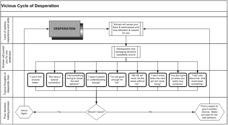 The diagram below illustrates the thought process that men have when they're in a relationship based on desperation. Click on the chart for a larger view: